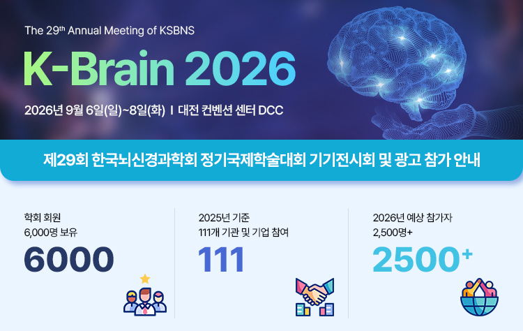The Korean Society for Brain and Neural Sciences installs and operates a device that automatically collects personal information such as 'cookie' or 'session' that frequently finds and stores your information. Cookies are small text files that are sent to your browser by the server used for the operation of the website of The Korean Society for Brain and Neural Sciences and are stored in your computer hard disk.